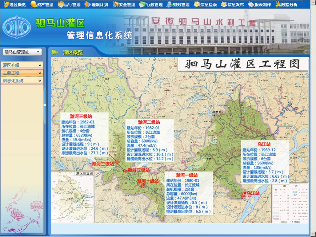 大中型灌区水资源管理信息化系统是一套基于微软.NET环境B/S架构的新型泵站综合信息管理软件。系统以全面预算和目标管理为龙头,以安全管理为基础、以资产管理为核心、以最优运行为目标,实现对大中型泵站的动态监测,并掌握各泵站的基本信息。通过一体化管理体系建立各个业务链的闭环标准业务流程;通过该业务系统平台推动整个泵站管理业务沿着标准流程顺利进行。