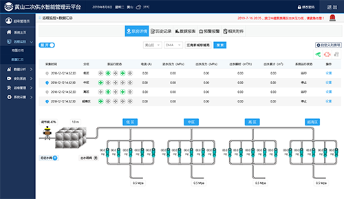 基于B/S结构进行开发,系统集数据采集、远程控制、综合分析于一体。对泵站运行数据进行实时监控;将泵站的液位、水泵启停、水泵运行时间、及泵站输送水量、格栅阀门的运行状态实时监测和记录;实现根据监测结果自动对相关设备进行启闭操作,实现智慧调度,最终实现泵站的无人值守等。
